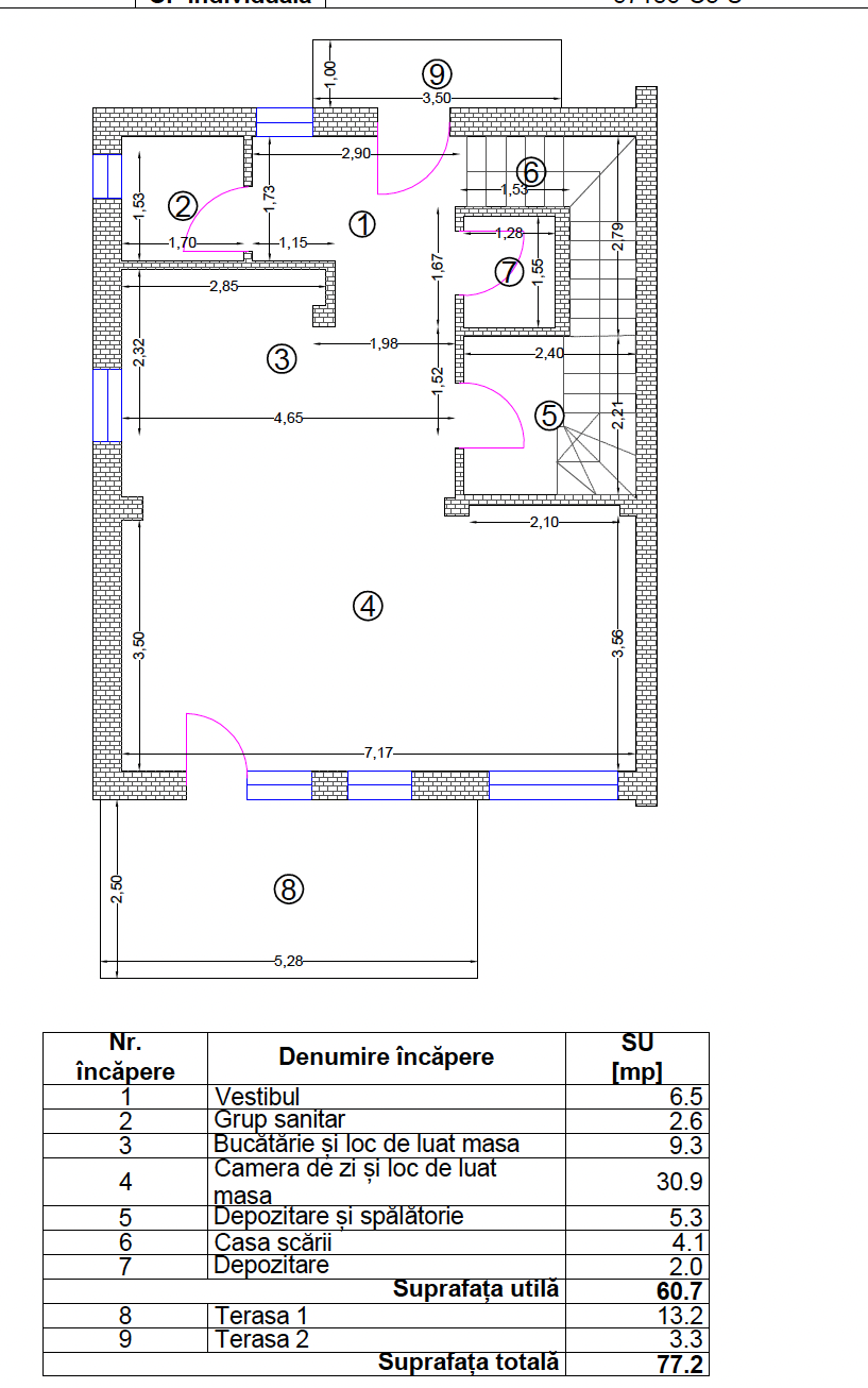Spațiu aerisit, design modern și funcțional. La parter ai zona de zi – living, dining, bucătărie, acces pe terasa si curte din living, baie de serviciu si 2 spații de depozitare. La etaj ai 3 dormitoare, 2 bai și balcon. Fiecare casă are curte proprie, garduri între vecini, 2 locuri de parcare și posibilitate de personalizare ulterioară.