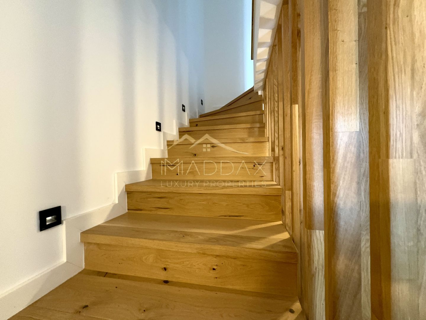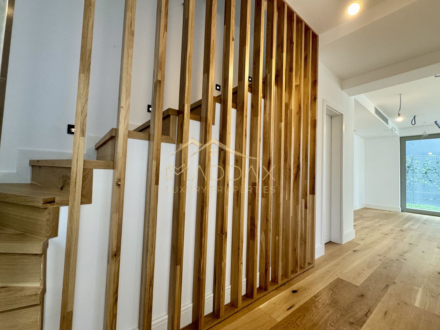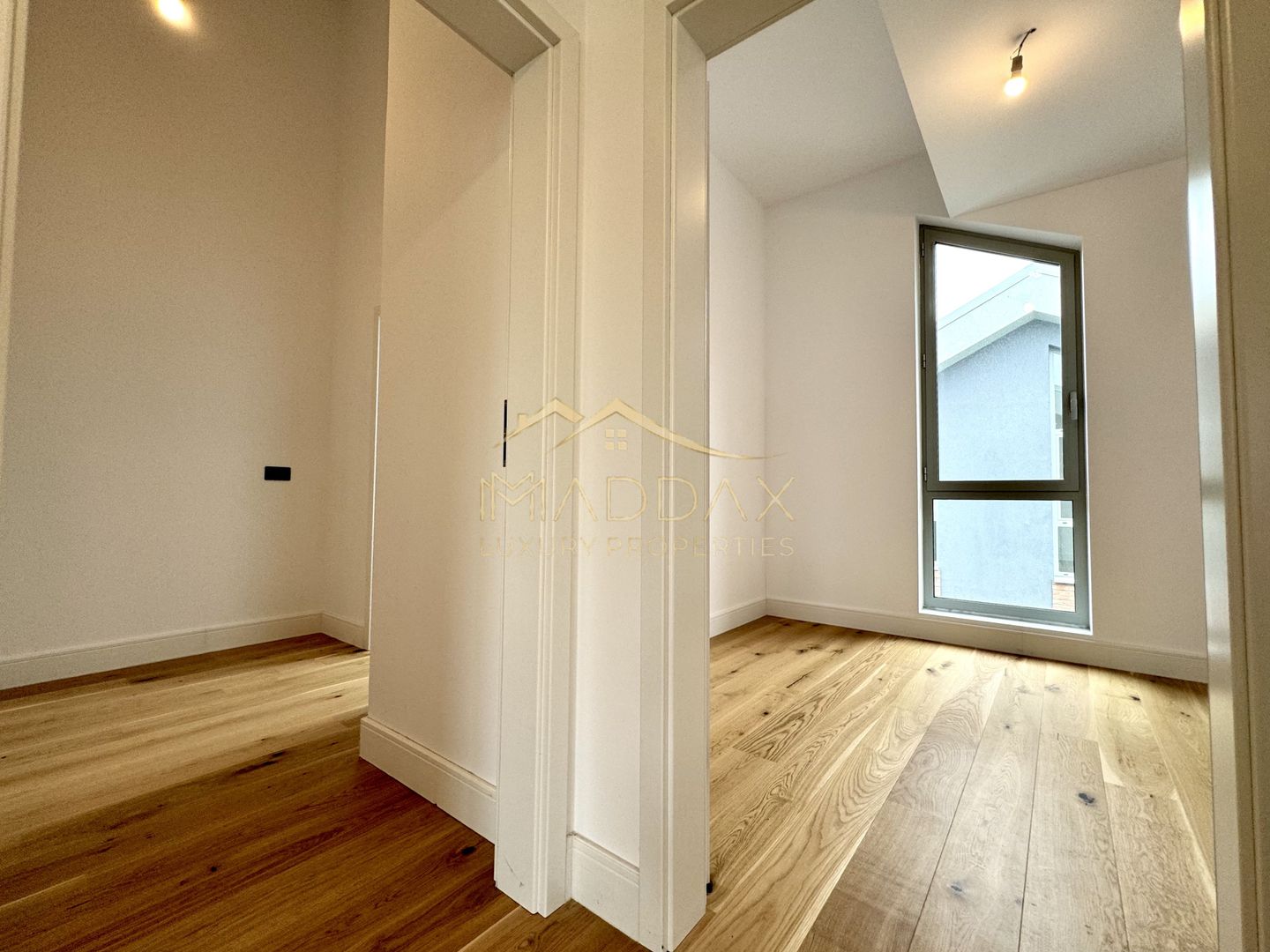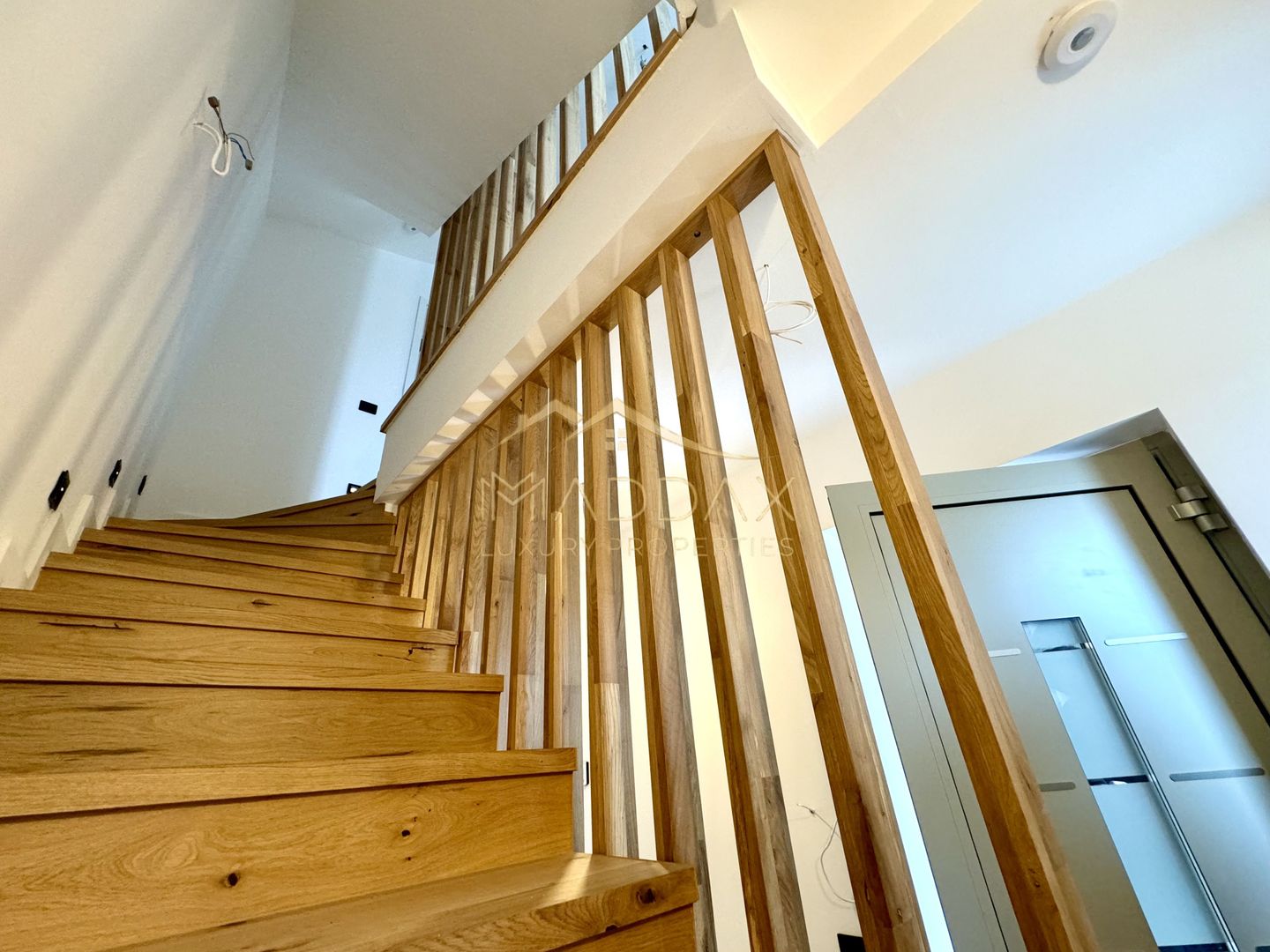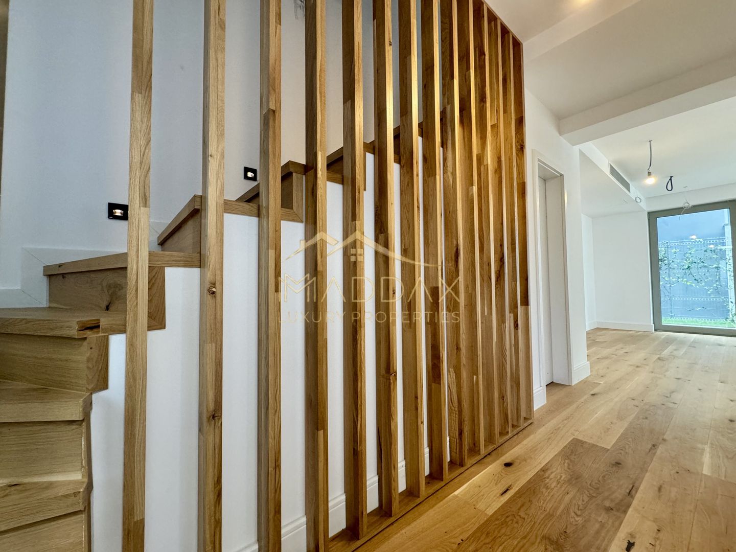 Finisajele sunt moderne, de cea mai înaltă calitate, ceramica Tempini Calacatta, parchet de stejar triplustratificat Barlinek, iar structura este din beton armat si cărămida Porotherm 30cm, fațada polistiren 15cm la exterior, cărămida aferentă, sistem colectare ape pluviale mascat prin fațada, partiții interioare gips-carton cuplu cu sistem antifonic cu vata bazaltică, termosistem mansarda din vata minerală bazaltică de 20cm.