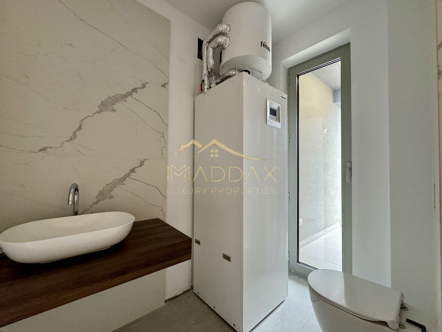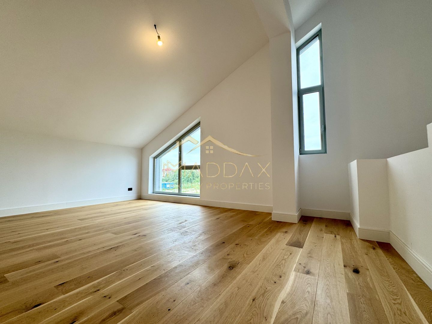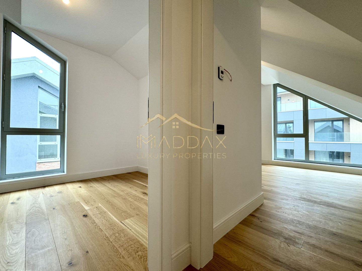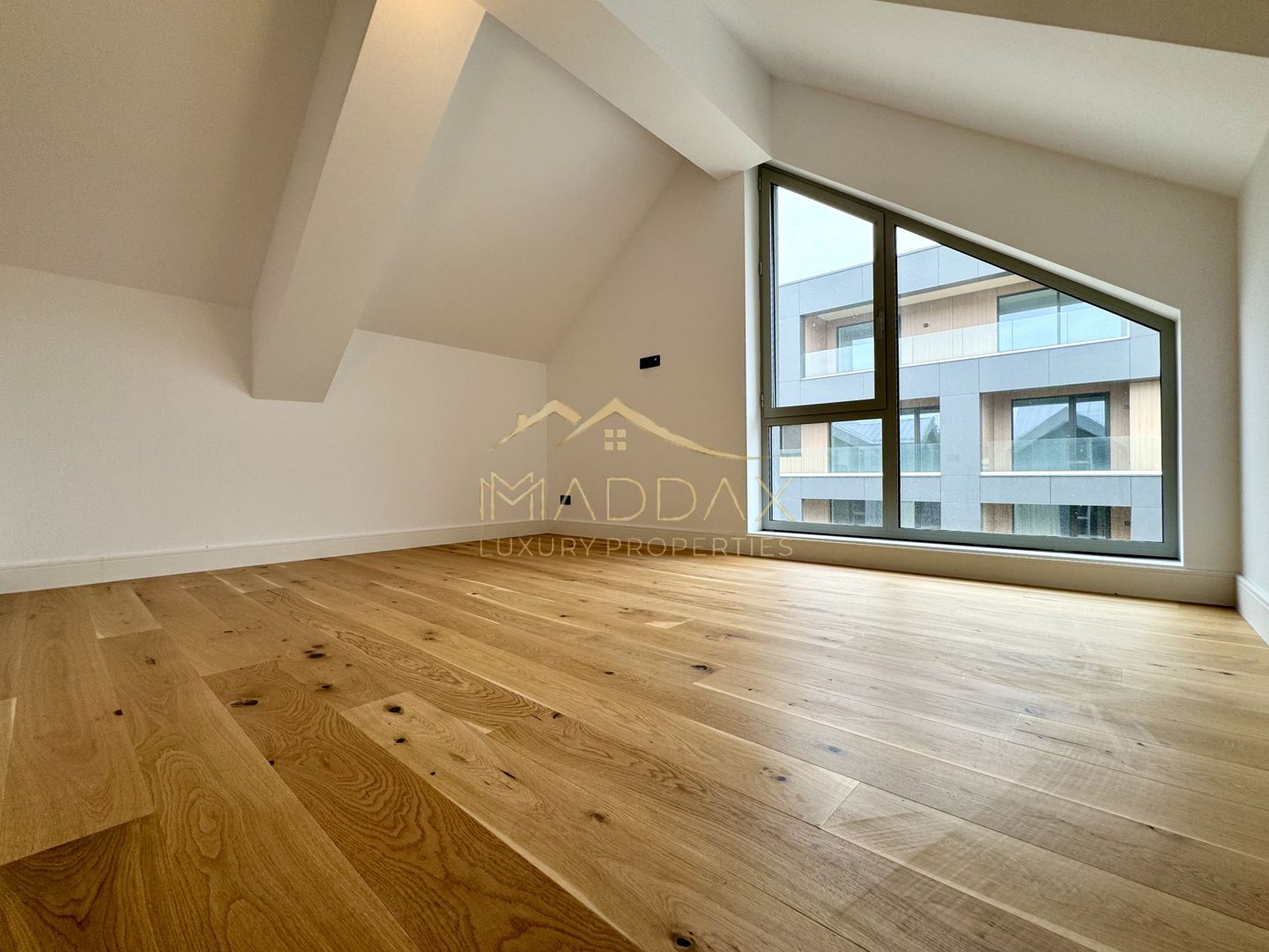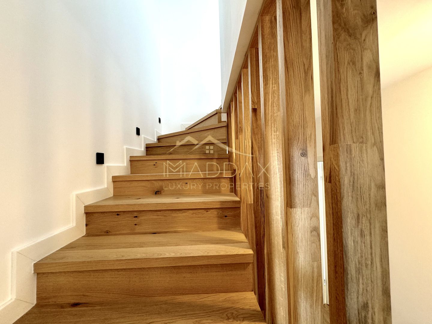 Finisajele sunt moderne, de cea mai înaltă calitate, ceramica Tempini Calacatta, parchet de stejar triplustratificat Barlinek, iar structura este din beton armat si cărămida Porotherm 30cm, fațada polistiren 15cm la exterior, cărămida aferentă, sistem colectare ape pluviale mascat prin fațada, partiții interioare gips-carton cuplu cu sistem antifonic cu vata bazaltică, termosistem mansarda din vata minerală bazaltică de 20cm.