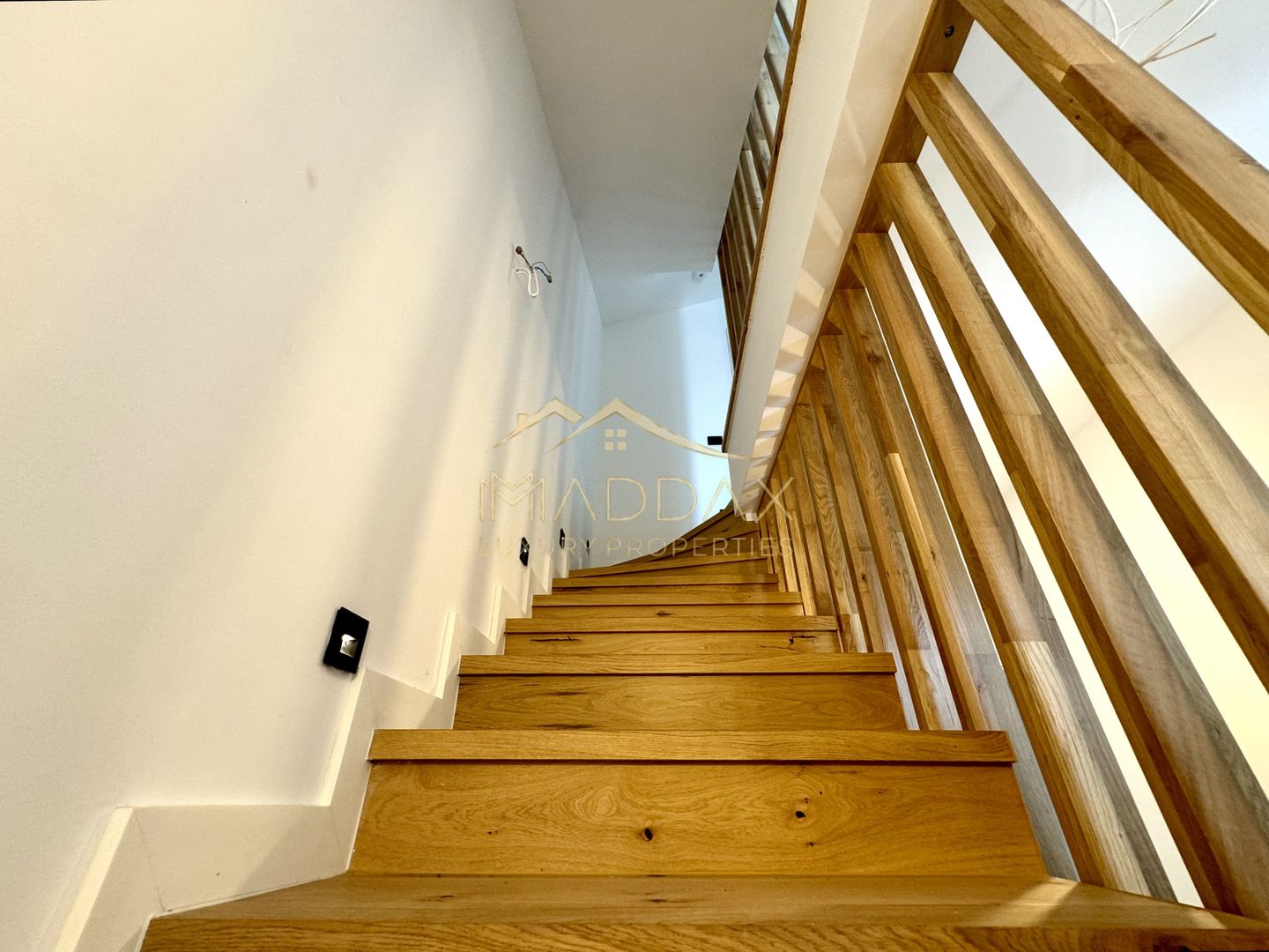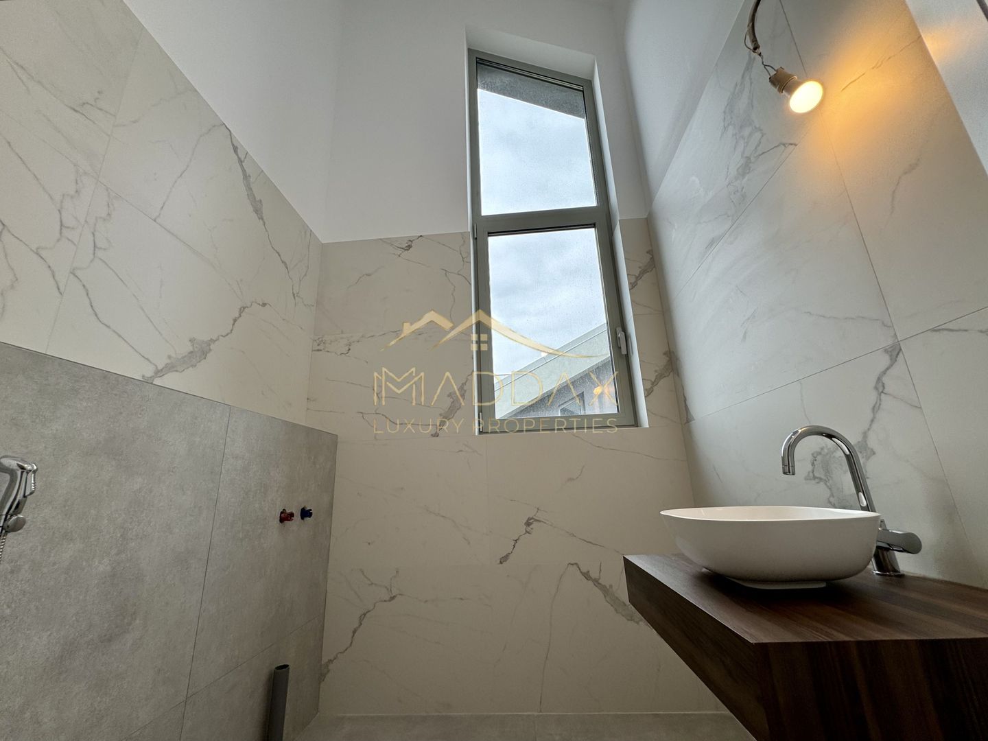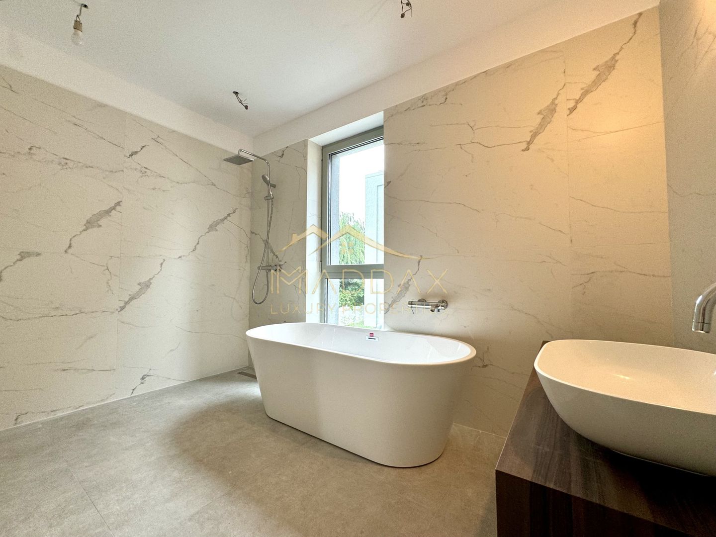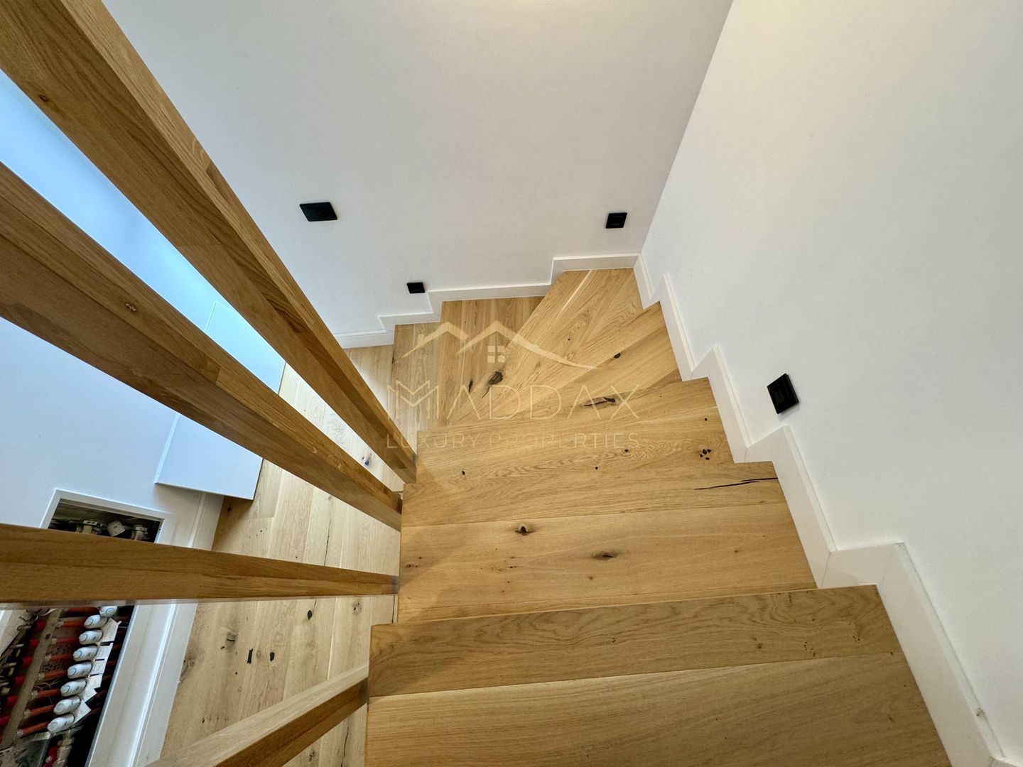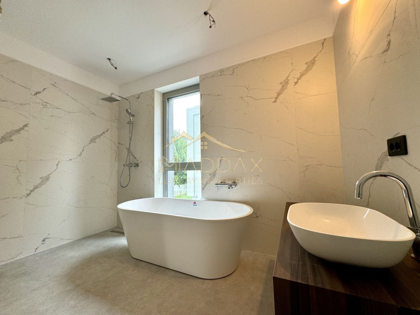 Finisajele sunt moderne, de cea mai înaltă calitate, ceramica Tempini Calacatta, parchet de stejar triplustratificat Barlinek, iar structura este din beton armat si cărămida Porotherm 30cm, fațada polistiren 15cm la exterior, cărămida aferentă, sistem colectare ape pluviale mascat prin fațada, partiții interioare gips-carton cuplu cu sistem antifonic cu vata bazaltică, termosistem mansarda din vata minerală bazaltică de 20cm.