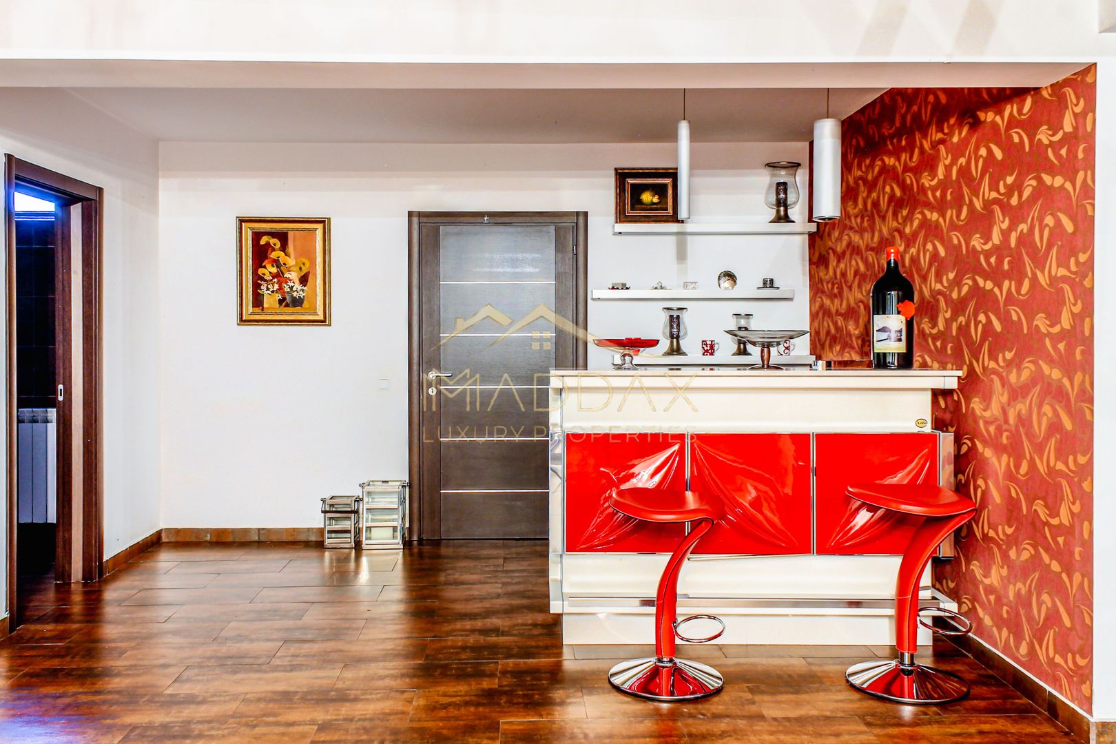 Demisol: Living, dormitor, loc de luat masa, bar, bucatarie, camera tehnica, spatiu de depozitare si 2 spatii de depozitare;